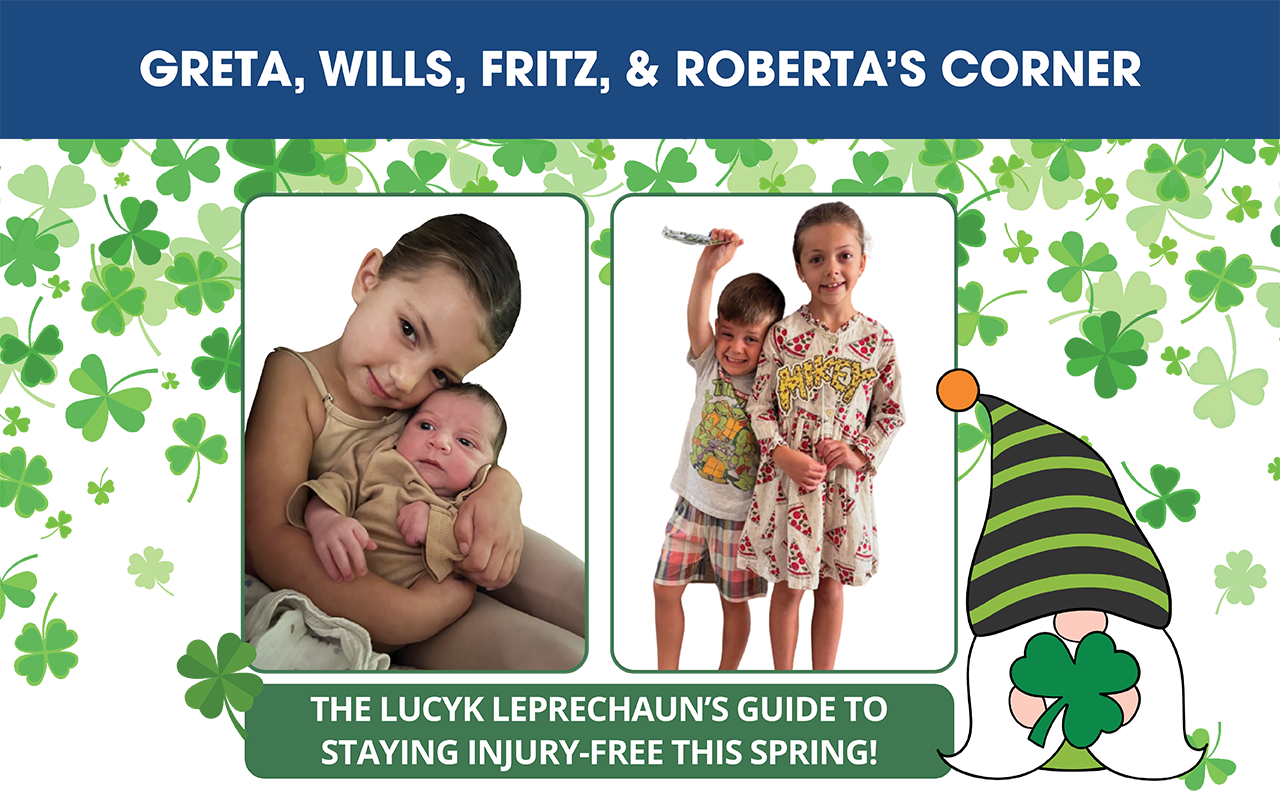 So, while you’re enjoying the shamrocks and sunshine this month, remember: stretch, balance, hydrate, and take care of yourself! Here’s to a spring full of fun and no injuries. May the luck of the Irish be with you!